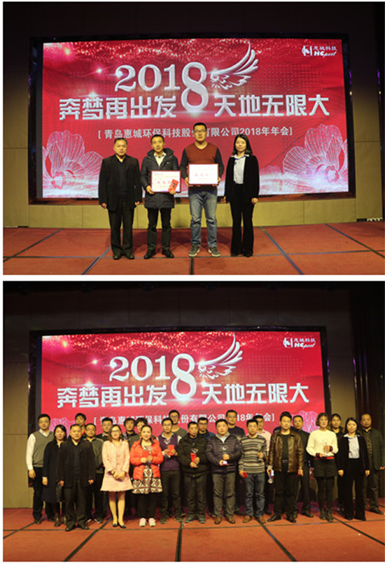 2月9日,青島惠城環保科技股份有限公司2018年度主題為“奔夢再出發 天地無限大”的總結表彰暨新春聯歡會在青島康大豪生大酒店隆重召開。